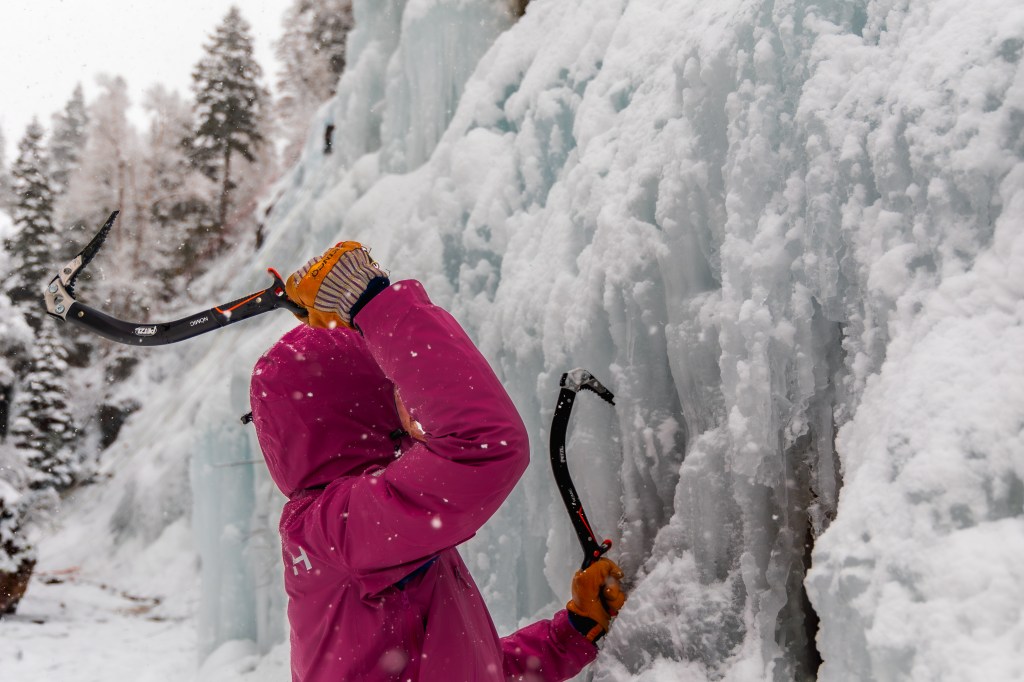 The Nomics are truly versatile. On vertical ice, they excel in stickability—once you plant them, they stay put. The aggressive curve in the shaft helps with clearance and precision, while the shape of the handle allows for excellent leverage when pulling through steep sections.